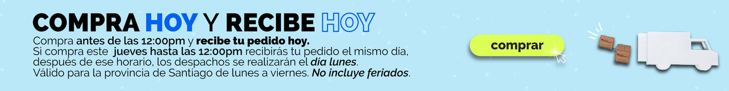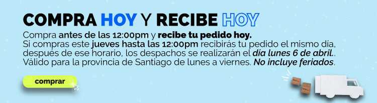 (Ejemplo: si compras el viernes a las 11:00am recibirás tu pedido el mismo viernes, mientras que si compras el viernes a las 1:30pm lo recibirás el día lunes durante el día).