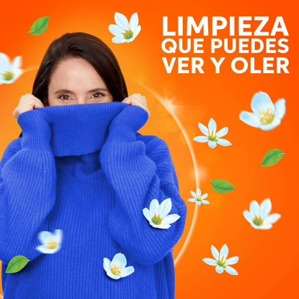Su fórmula concentrada y hipoalergénica elimina manchas difíciles, protege los tejidos y funciona incluso en agua fría. Rinde hasta 45 lavados.