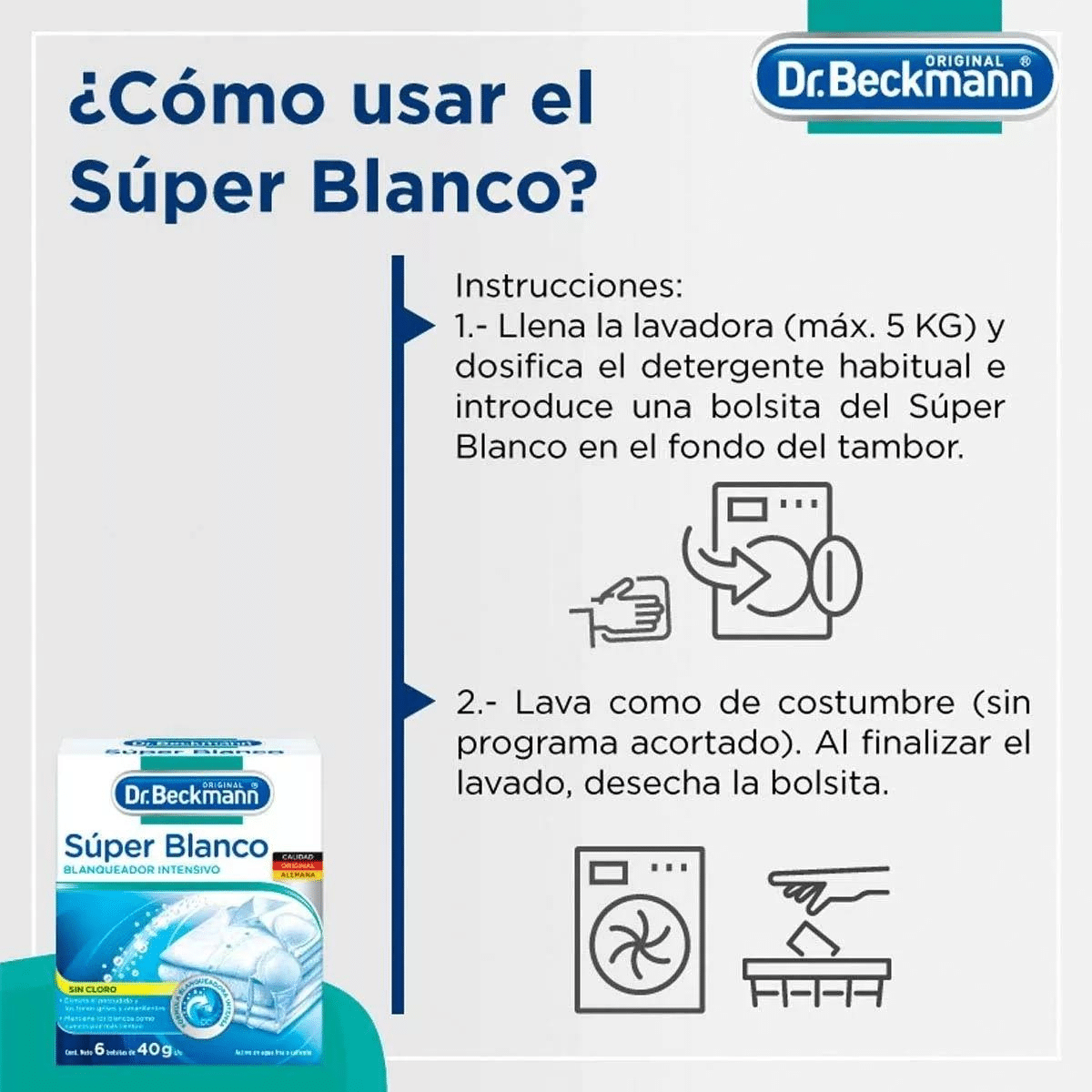 El blanqueador intensivo Dr. Beckmann, devuelve el blanco radiante a tus prendas sin dañar las fibras.