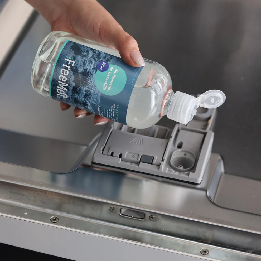 Complementa perfectamente el Detergente Lavavajillas Freemet, garantizando una limpieza eficiente y sostenible. Además, su envase de vidrio 100% reciclable y reutilizable refleja el compromiso de la marca con el medioambiente.