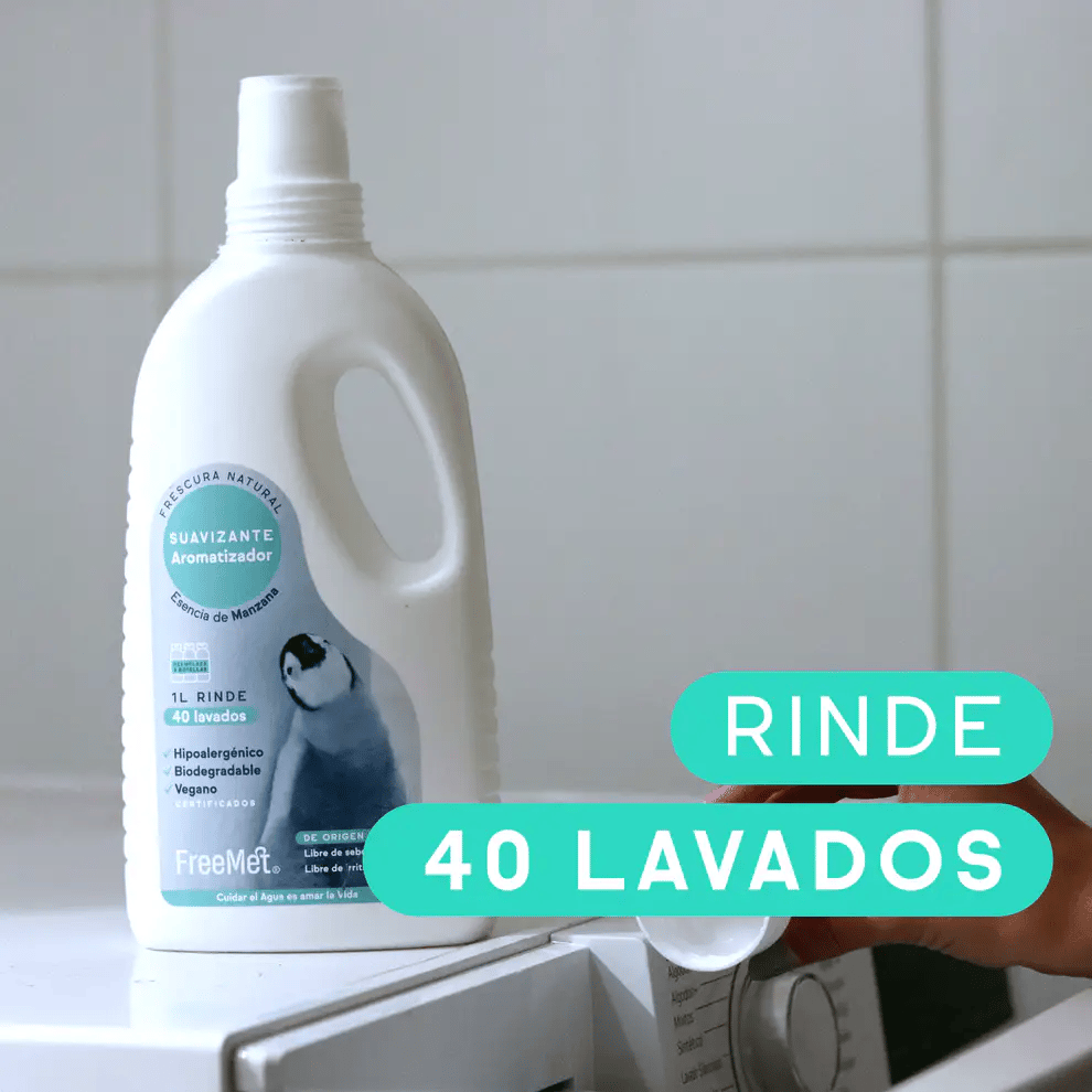 El Suavizante Freemet Manzana entrega una suavidad increíble y un aroma fresco a manzana verde que perdura en cada lavado. Su fórmula vegana e hipoalergénica, elaborada con ingredientes vegetales biodegradables, protege las fibras, reduce la estática y deja la ropa más fácil de planchar.