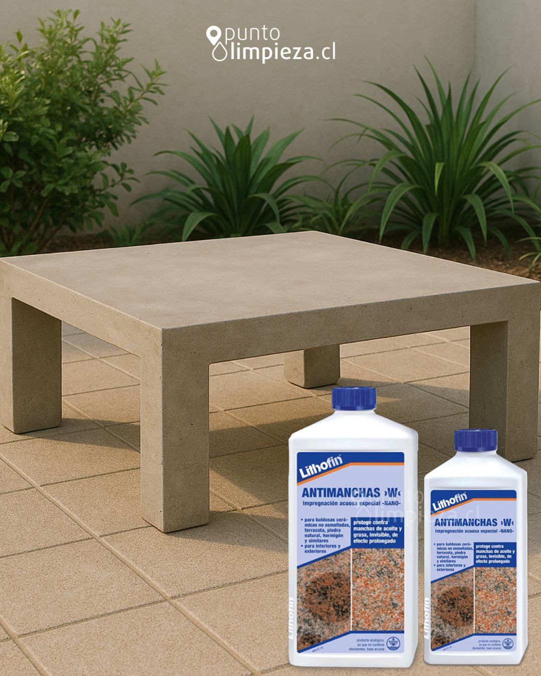 El Lithofin Antimanchas W es un impregnante protector de origen alemán, desarrollado especialmente para proteger superficies absorbentes como piedras naturales y baldosas no esmaltadas de la penetración de agua, aceite, grasa y suciedad.