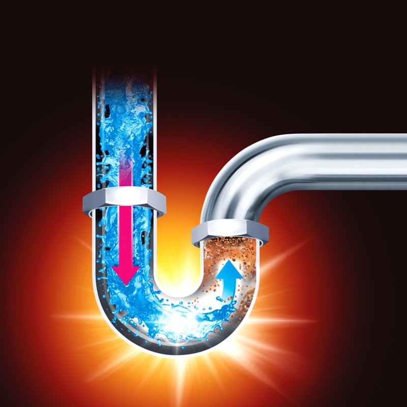 Su fórmula en gel de alta densidad se adhiere a las paredes internas de las tuberías, actuando directamente sobre la obstrucción. Disuelve residuos orgánicos como grasa, restos de jabón y cabello, dejando las cañerías limpias y funcionando correctamente, sin dañar los conductos.