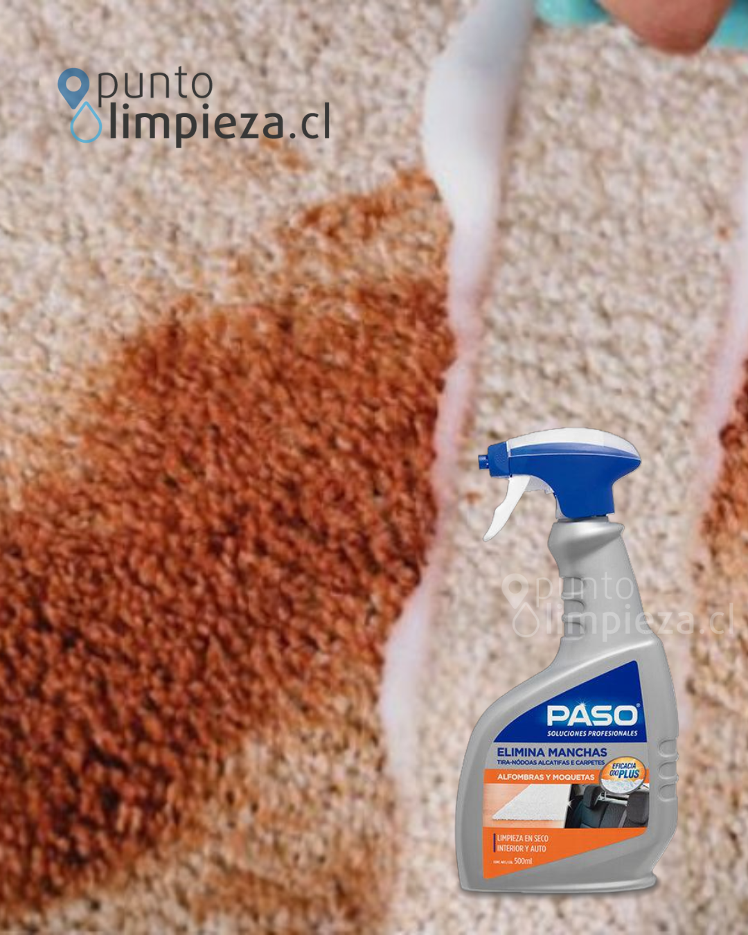 El Eliminador de Manchas Paso remueve eficazmente todo tipo de manchas —como café, vino, grasa, té, frutas o chocolate— gracias a su fórmula OxiPlus que actúa en profundidad sin dañar las fibras.