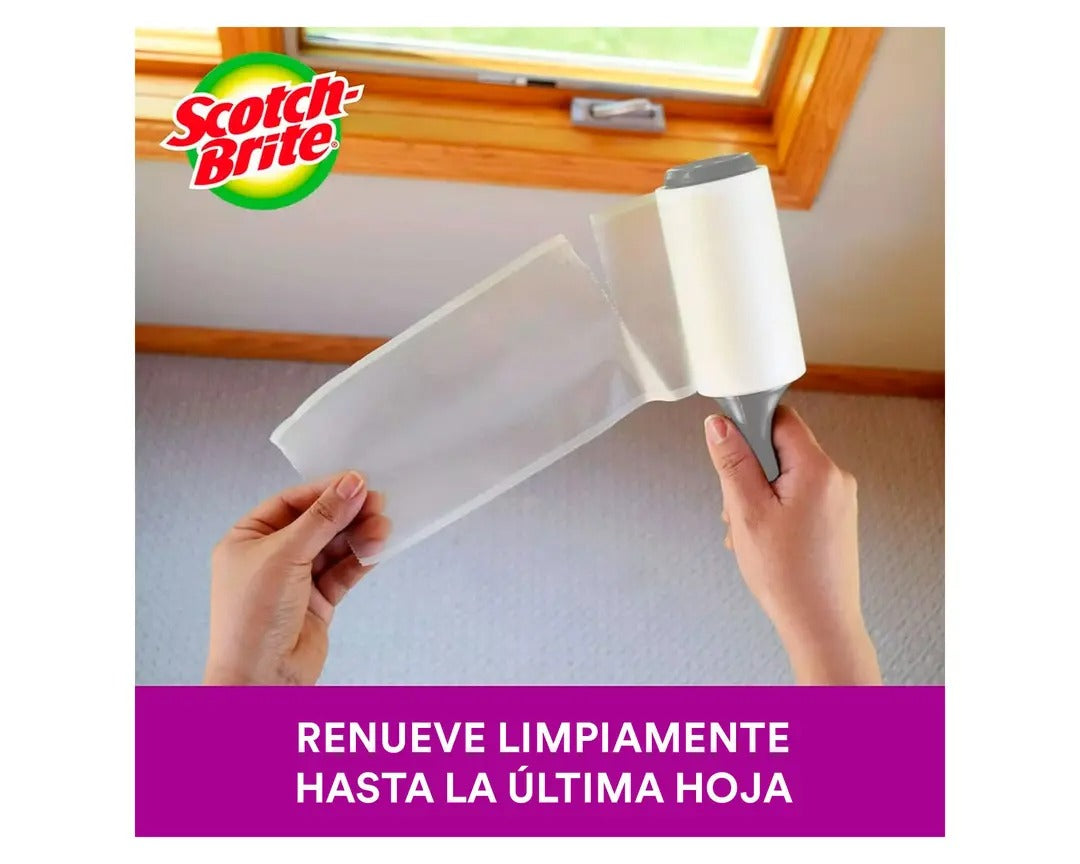 El Quitapelusas Scotch-Brite® para Mascotas es la solución práctica y eficiente para mantener tu ropa, muebles y cortinas libres de pelos, pelusas y polvo. Gracias a la tecnología adhesiva 3M, atrapa los residuos sin dañar las telas, ofreciendo una limpieza rápida y sin esfuerzo. Su mango ergonómico facilita el uso y las 56 hojas adhesivas desechables se desprenden fácilmente cuando están saturadas, garantizando máxima higiene y rendimiento. Ideal para hogares con mascotas y para quienes buscan una apariencia impecable todos los días. Scotch-Brite® – Tecnología 3M para una limpieza que se nota.